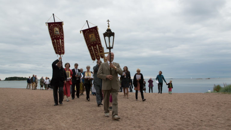Liturgia ja ristisaatto meren rantaan vedenpyhitykseen