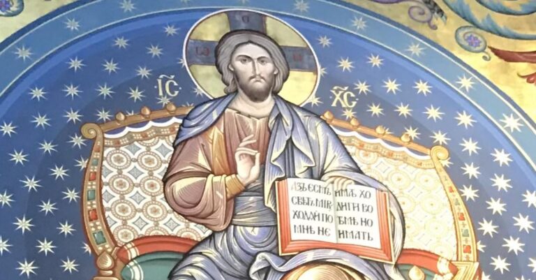 Kristus kaikkivaltias valtaistuimella. Kuva: Järvenpään ortodokisen kirkon Facebook-sivun Raamattupiiristä kertovan päivityksen kuvituskuva.