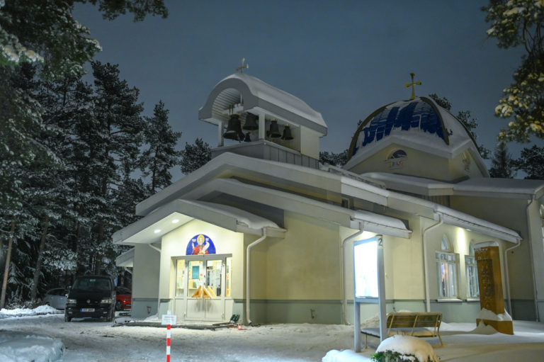Ensimmäinen ilta-aikaan lähetetty radiointi tulee Pyhittäjä Herman Alaskalaisen kirkosta Espoon Tapiolasta. Kuva: Andrey Sydor