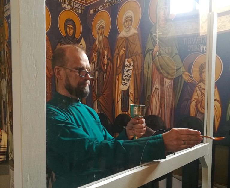 В церкви Преподобного Германа Аляскинского в Тапиола (Православный приход Хельсинки) с целью противодействие распространению COVID-19 в летнее время при причащении священником мирян будет использоваться защитная витрина. Щит из органического стекла эффективно препятствует передаче вируса воздушно-капельным путём.
