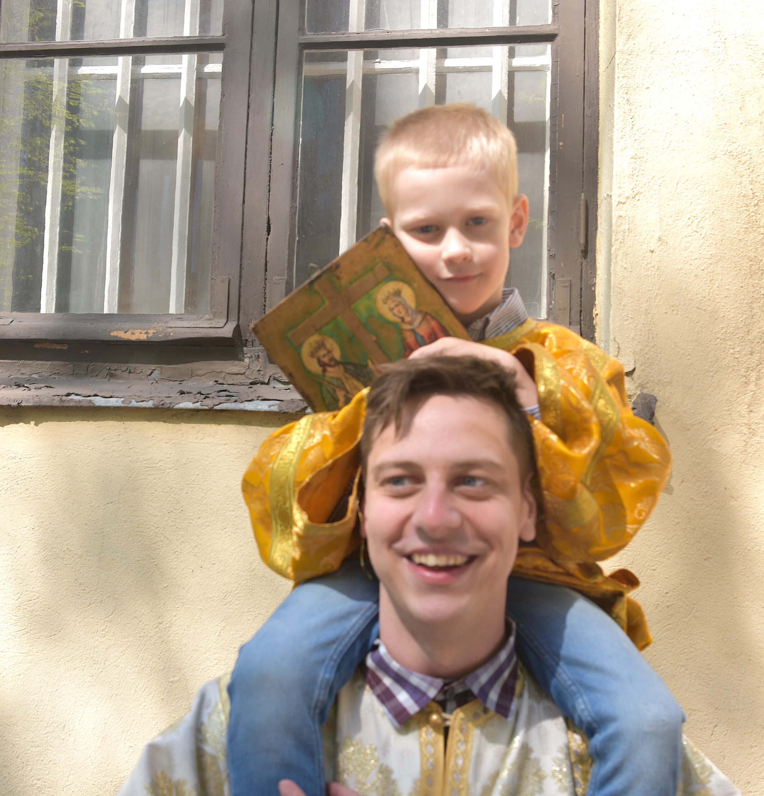 ponomari-kolmininaisuuden-kirkon-praasniekka-2024-ilja-domin-ja-poikansa-immanuel-ristisaatossa kopio