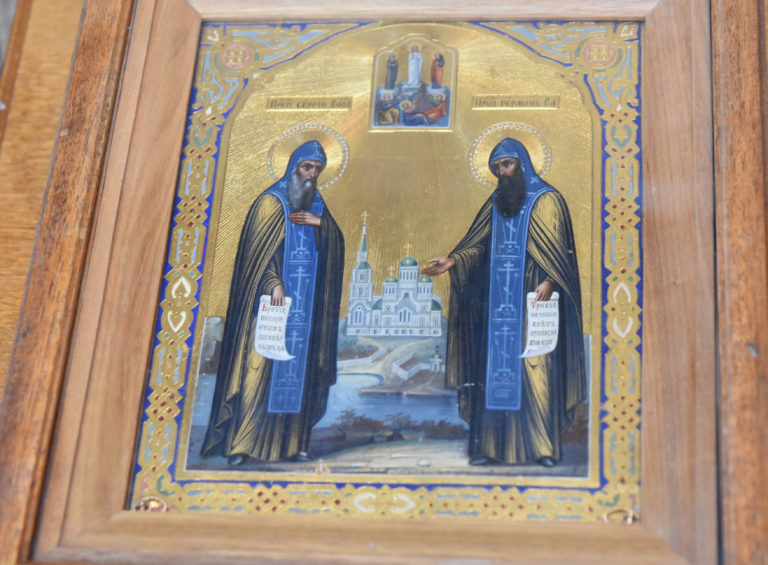 Pyhittäjien Sergei ja Herman Valamolaisten ikoni Uspenskin katedraalissa Helsingissä. Kuva: Vlada Wahlstén/Helsingin ortodoksinen seurakunta