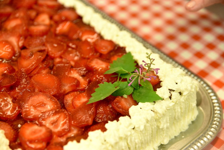 Temppelijuhliin kuuluvat erottamattomana osana myös juhlavat kirkkokahvit, sillä praasniekka on kyseisen pyhäkön vuoden suurin juhla pääsiäisen jälkeen. Stefanoskodin temppelijuhlassa tarjottiin oman maan aineksista leivottua mansikkakakkua, jota koristi muun muassa Kreetalta luostarista tuotu basilika. Teksti ja kuva: Vlada Wahlsten