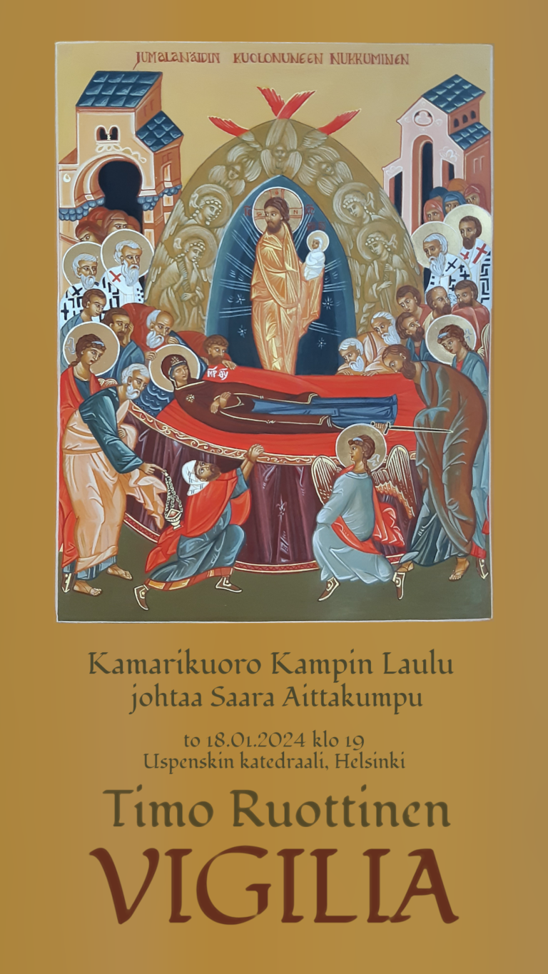Kyseessä on katedraalin nimikkojuhlan, elokuussa vietettävän Jumalansynnyttäjän kuolonuneen nukkumisen juhlan eli Uspenien juhlavigilia. Konserttiversio sisältää vigilian pysyvät osat sekä valikoituja osia juhlan veisuista, kuten stikiiroista ja kanonista. Konsertin johtaa Kampin Laulun taiteellinen johtaja, Sibelius-Akatemian kuoronjohdon lehtori Saara Aittakumpu.