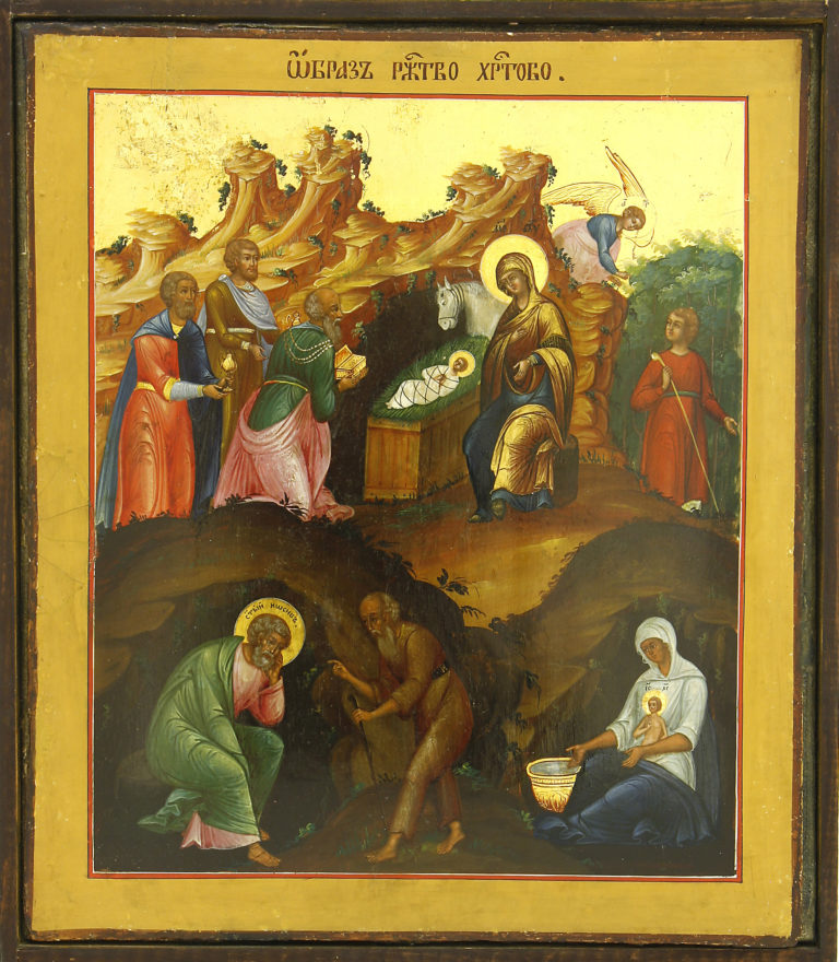 Христос народився від Пресвятої Діви Марії у Віфлеємі Юдейському. За православним переданням, місцем народження була печера, що слугувала притулком для тварин. Ангели сповістили пастухам радісну звістку про народження Спасителя, і вони поспішили поклонитися новонародженому Христу. Мудреці зі Сходу принесли Христові царські дари: золото, ладан і миро. Свято Різдва Христового відзначається у день Різдва. Святвечір є часом приготування до свята, тобто періодом Різдвяного посту. Другий день Різдва присвячений пам’яті Богородиці. Свято належить до дванадцяти великих свят.