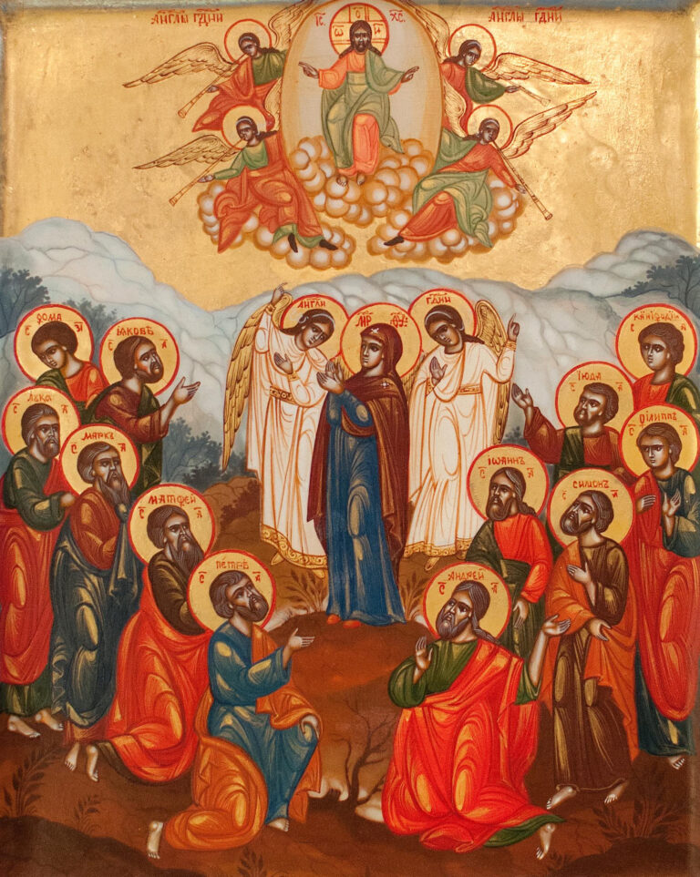 Після Свого Воскресіння Христос неодноразово являвся учням, зміцнюючи їхню віру. А через сорок днів Він вознісся на небо перед очима апостолів з Оливної гори.