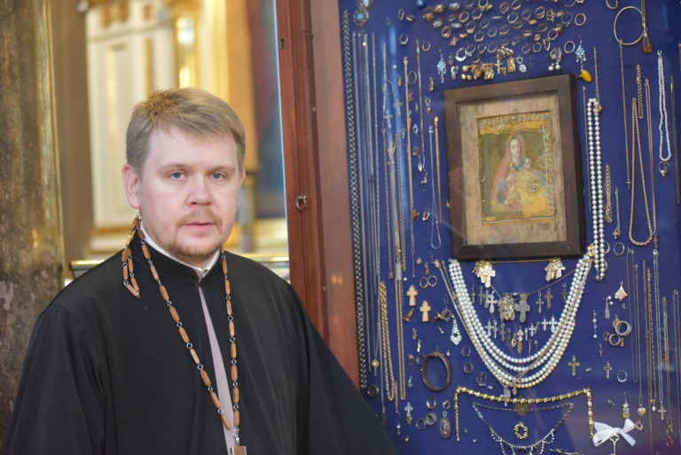 Isä Sergiy Berezhnoy liikuttui käydessään kunnioittamassa Kozelštšanin Jumalansynnyttäjän ikonia Uspenskin katedraalissa. Alkuperäinen ikoni on maalattu Ukrainassa, mistä myös ikonin nimi juontaa juurensa.