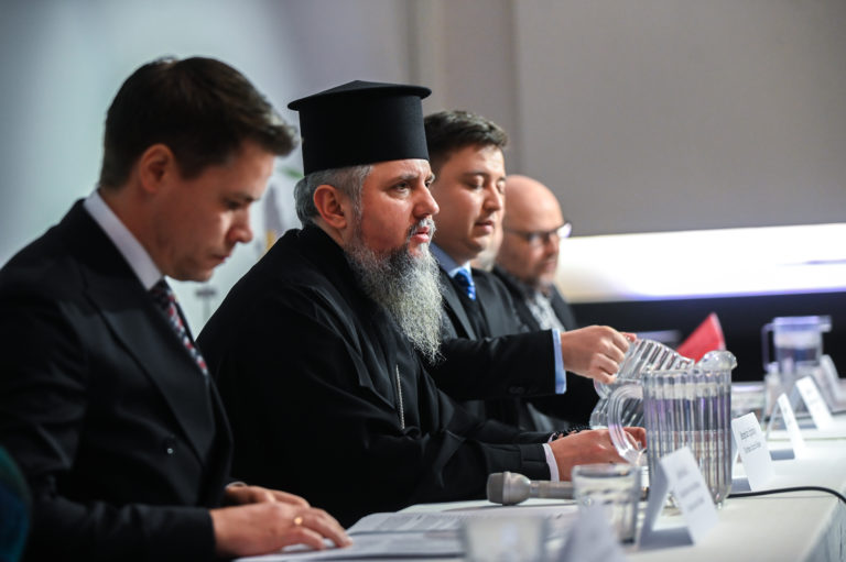 Kiovan ja koko Ukrainan metropoliitta Epifani tiedotustilaisuudessa Helsingissä. Kuva: Andrey Sydor