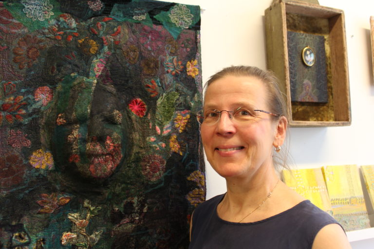 Lopullisesti kirjontatekniikka hurmasi taiteilijan opiskelijavaihdossa 1990-luvun alussa Irlannissa.