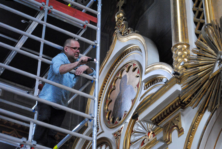 – Kyseessä ei ole uudelleenkultaus, vaan vanhasta kultauksesta säilytetään kaikki, mikä voidaan. Tämä voi näkyä uuden ja vanhan kultauksen välisenä erona, kertoo kultaajamestari Harri Virtanen.