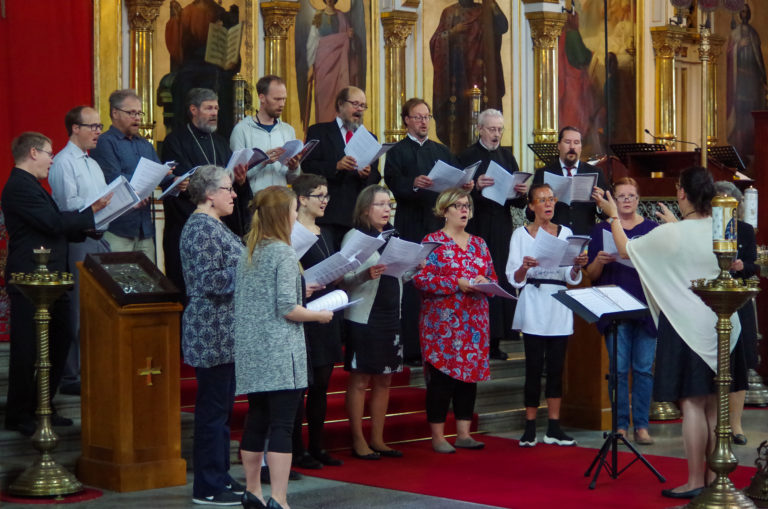 Uspenskin katedraalikuoro esiintymässä Taiteiden yönä 2018. Kuva: Saara Kallio