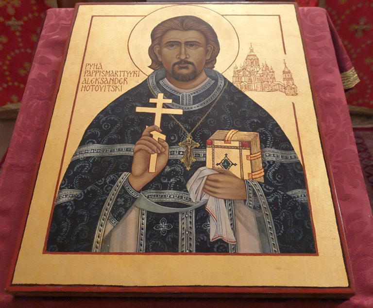 Helsingin ortodoksisen seurakunnan ja Suomen ortodoksisen kirkon paikallispyhä Aleksander Hotovitski kanonisoitiin Venäjän ortodoksisen kirkon toimesta vuonna 1994. Kuva: Anu Miller