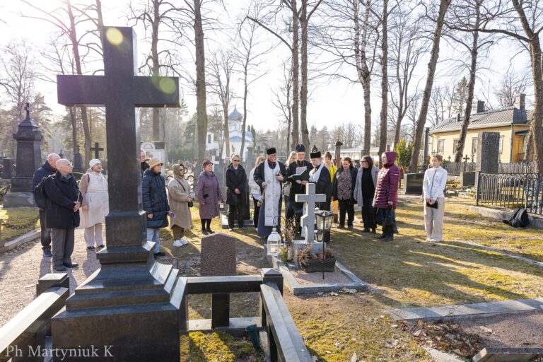 Helsingin Lapinlahden hautausmaalle toimitetaan Tuomaan tiistaina litania-jumalanpalveluksia haudoilla. Kuvassa litaniaa toimittamassa vuonna 2024 rovasti Heikki Huttunen, pastori Peter Schiel sekä kanttorina isä Petri Hakonen. Kuva: Khrystyna Martyniuk