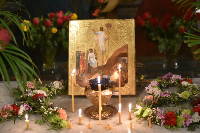 Kristuksen ylösnousemuksen ikoni Uspenskin katedraalissa vainajien muistopöydällä. Kuva: Vlada Wahlstén