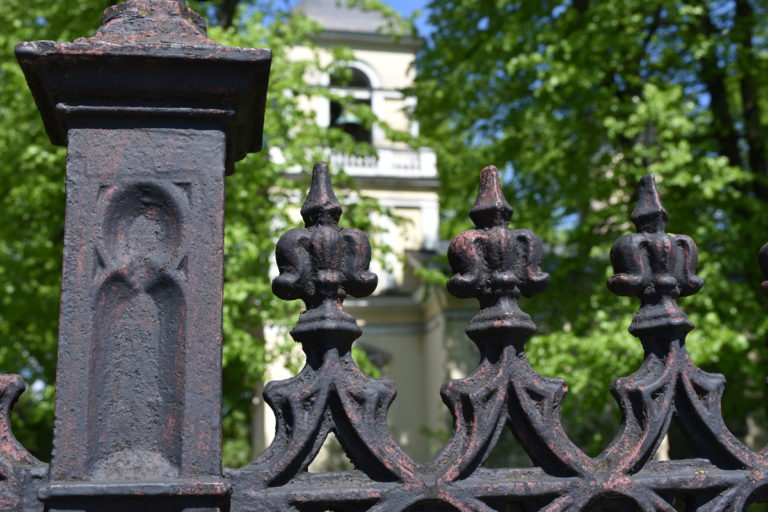 Pyhän Kolminaisuuden kirkko, etualla kirkon aita. Kuva: Dimitri Tolonen